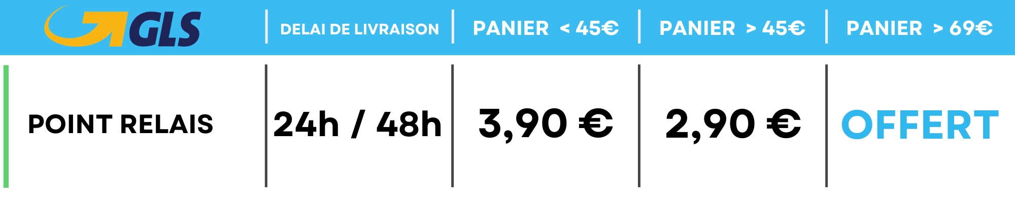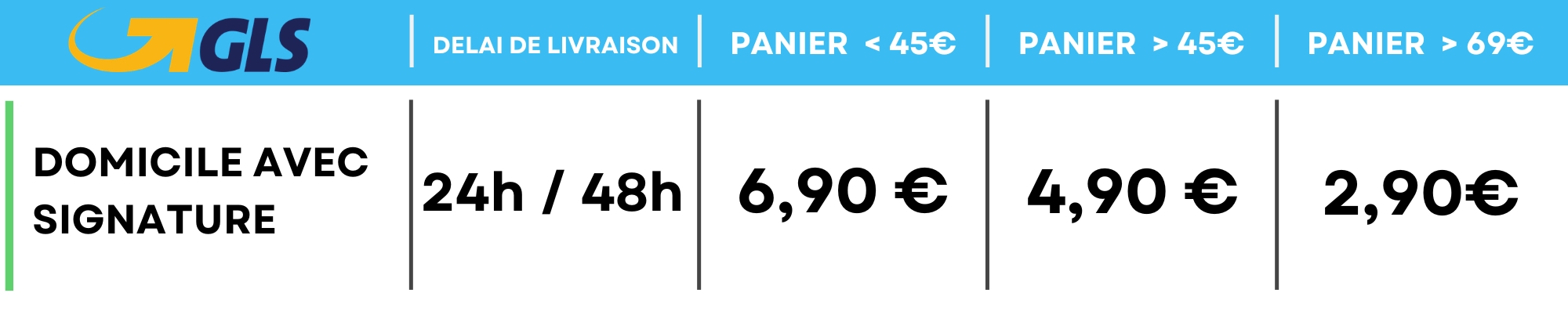 - GLS : 24 à 72h ouvrées